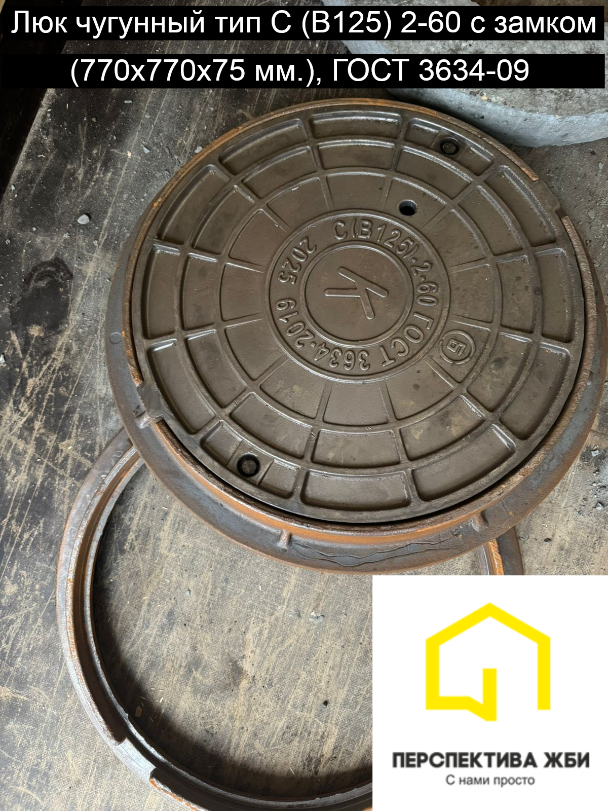 Люк чугунный тип С (В125) 2-60 с замком, ГОСТ 3634-09