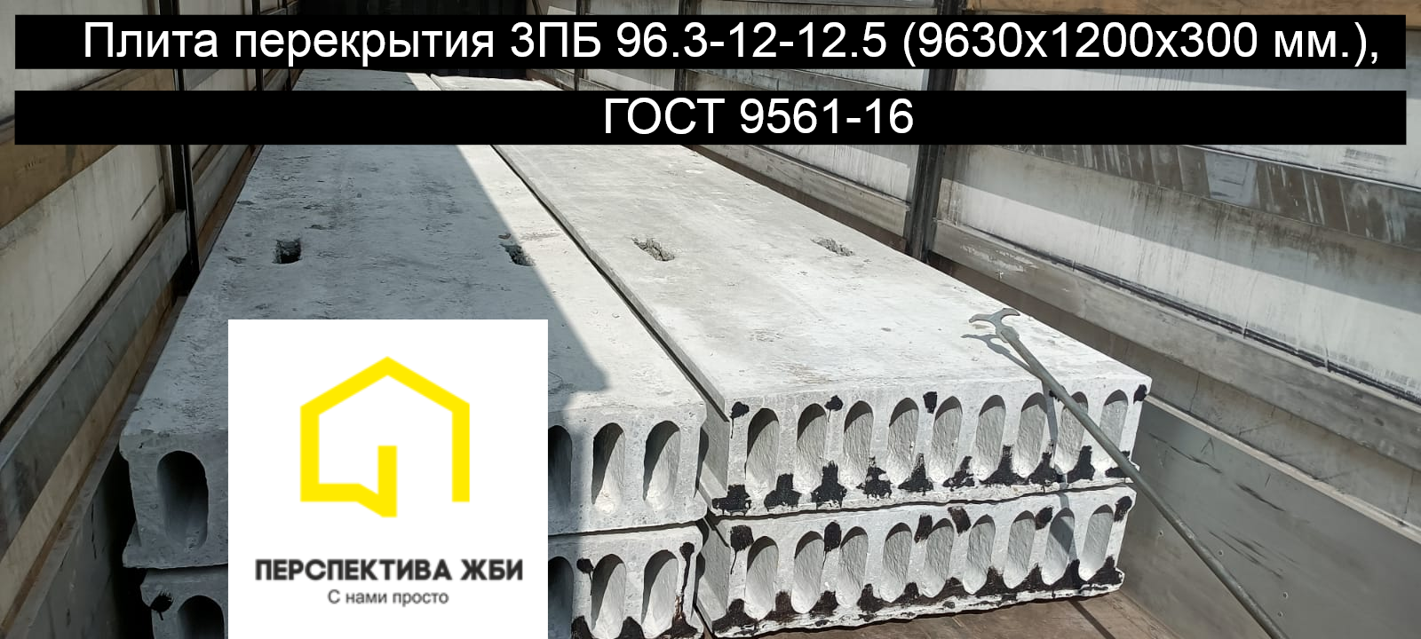 Плита перекрытия 3ПБ 96.3-12-12.5, ГОСТ 9561-16